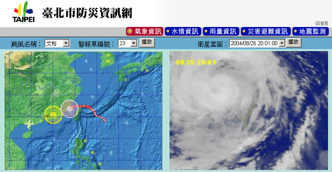 以這次的颱風而言,在”台北市防災資訊網”裡,有著種資訊,如”歷年淹水資訊”